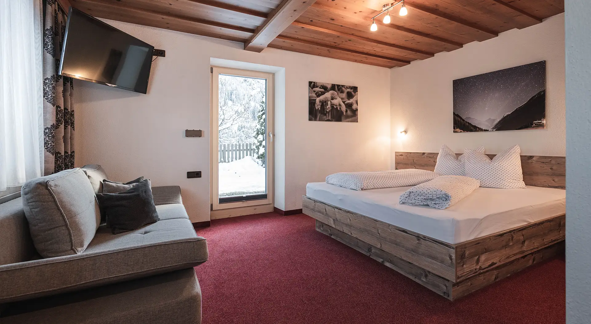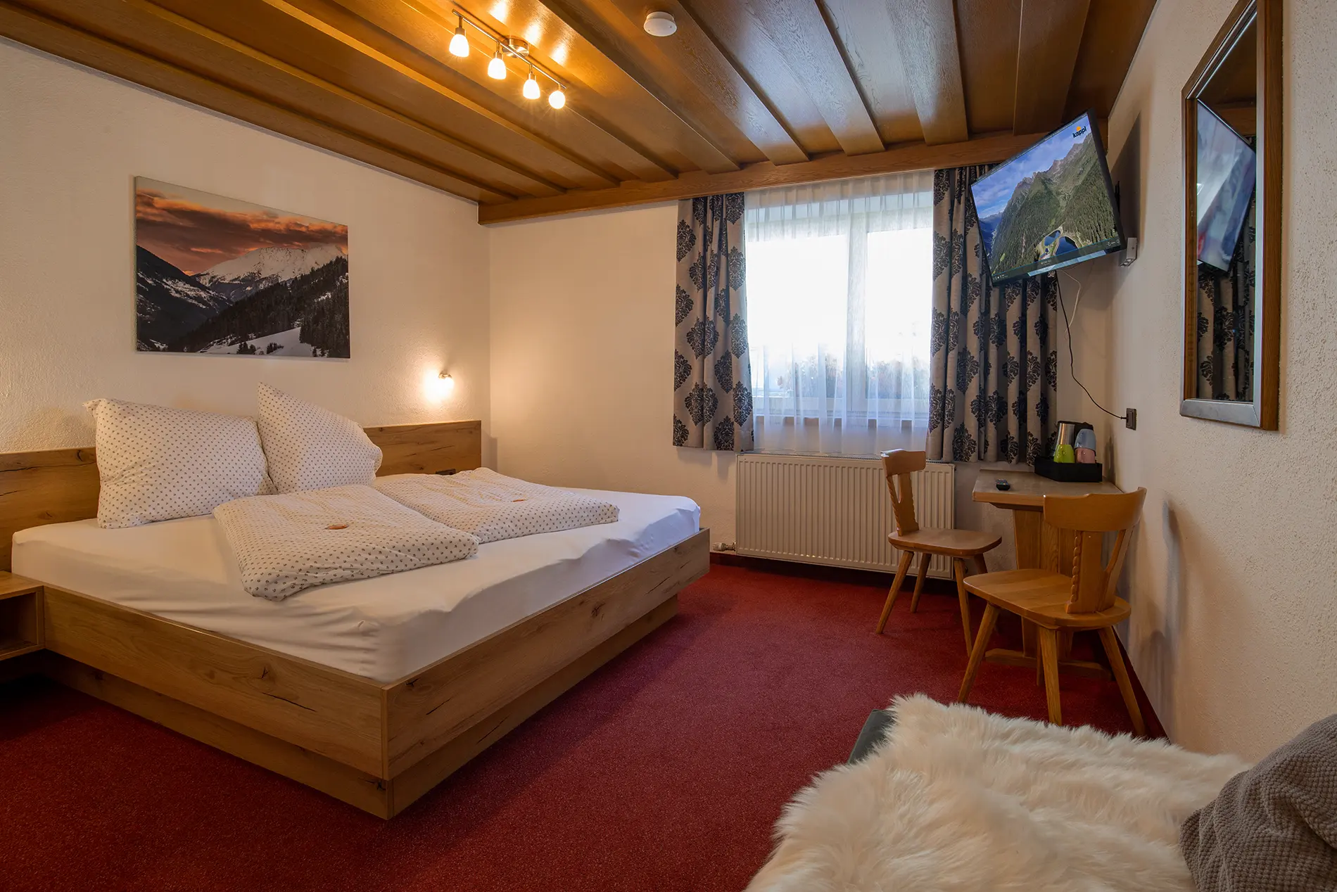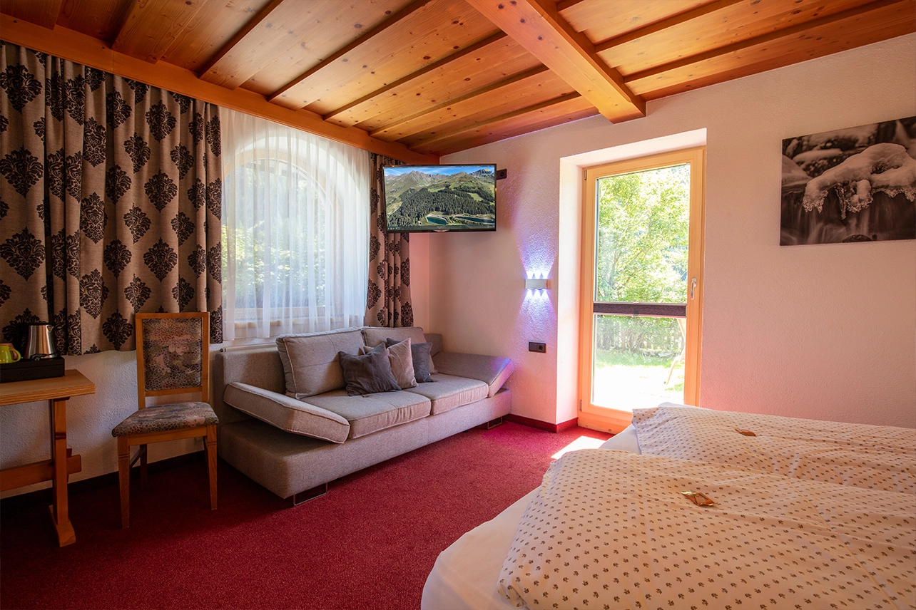 Our spacious double rooms in Tyrolean style offer you the ideal retreat for your winter and summer holidays. An extra bed can also be added for a third person. Each room is lovingly furnished and has a modern bathroom with shower and WC, a table, satellite TV and a hairdryer. All windows are equipped with blackout curtains. Most rooms also have a couch for relaxing, which can also be used as an extra bed if required.